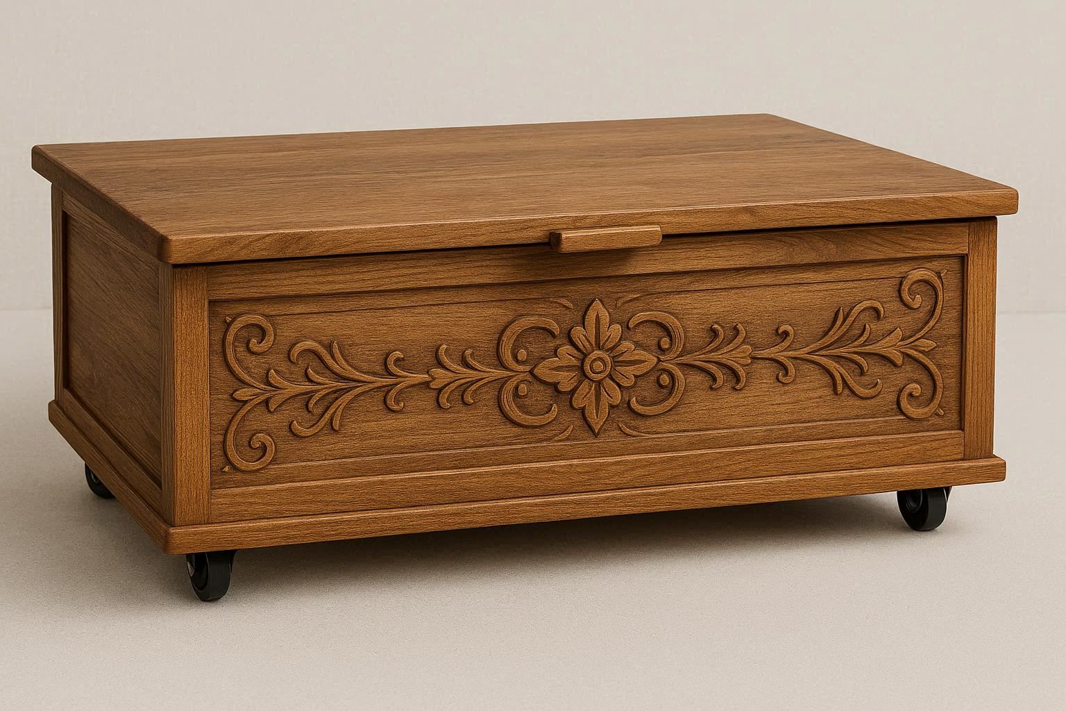 Wooden Under Bed Storage Chest with Lid and Decorative Design