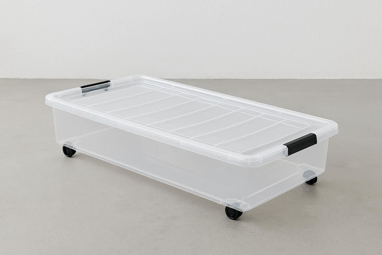 Clear Plastic Under Bed Storage Box with Wheels and Lid