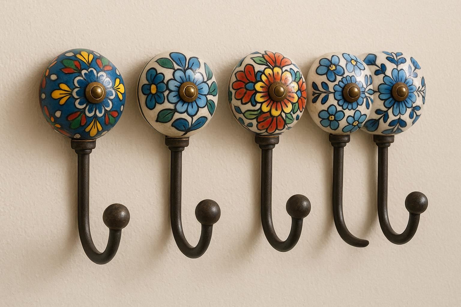 Decorative Ceramic Wall Hooks Set for Coats and Hats