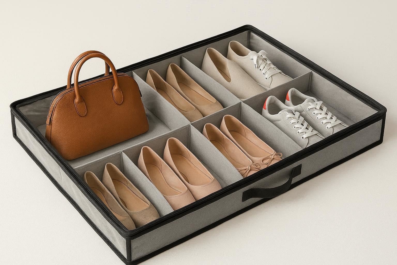 Flat Under Bed Storage Box for Shoes and Handbag Organization